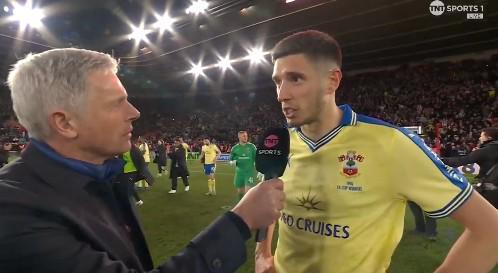 本赛季英格兰足总杯1/4决赛,阿森纳爆冷1-2不敌南安普顿,为南安普顿打入1粒进球的斯图尔特赛后接受了TNT体育的采访。